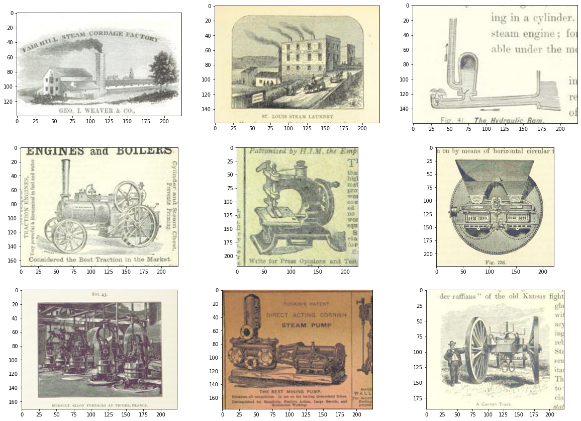 retrieved_examples['img'][0]This isnโt quite a steam engine but itโs also not a completely weird result. We can plot the other results to see what was returned.